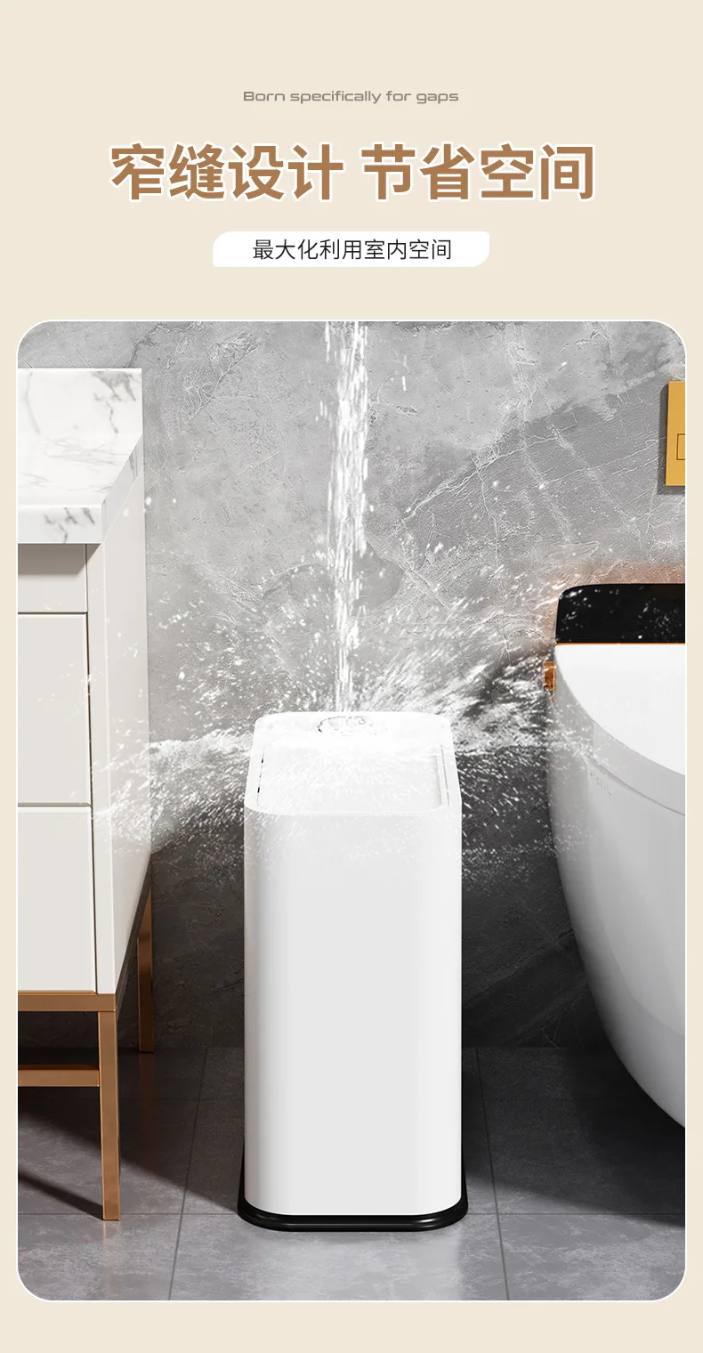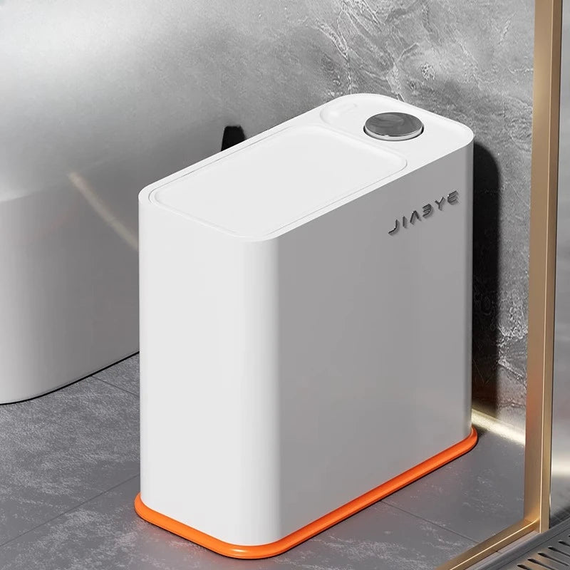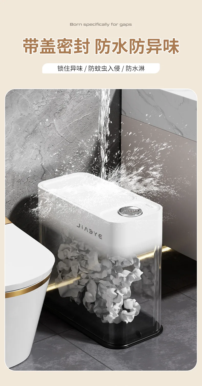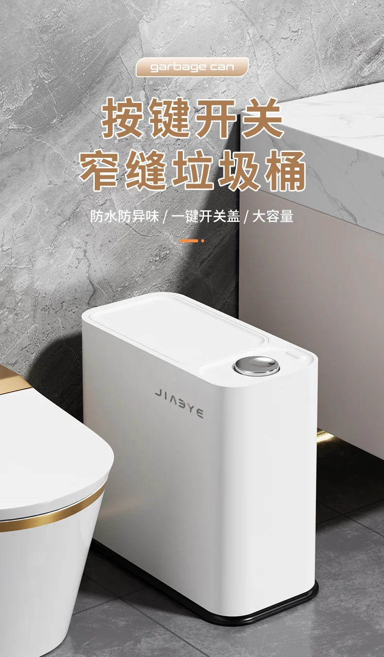 Narrow Trash Can with Lid, Touch Press Kitchen Bathroom Bin - Slim Space Saving Waste Basket, Large Capacity Waterproof Design