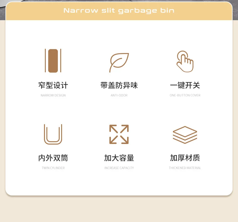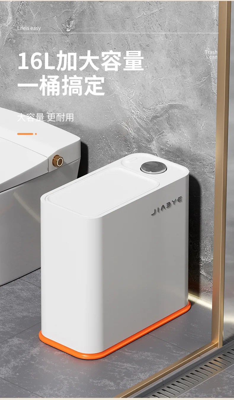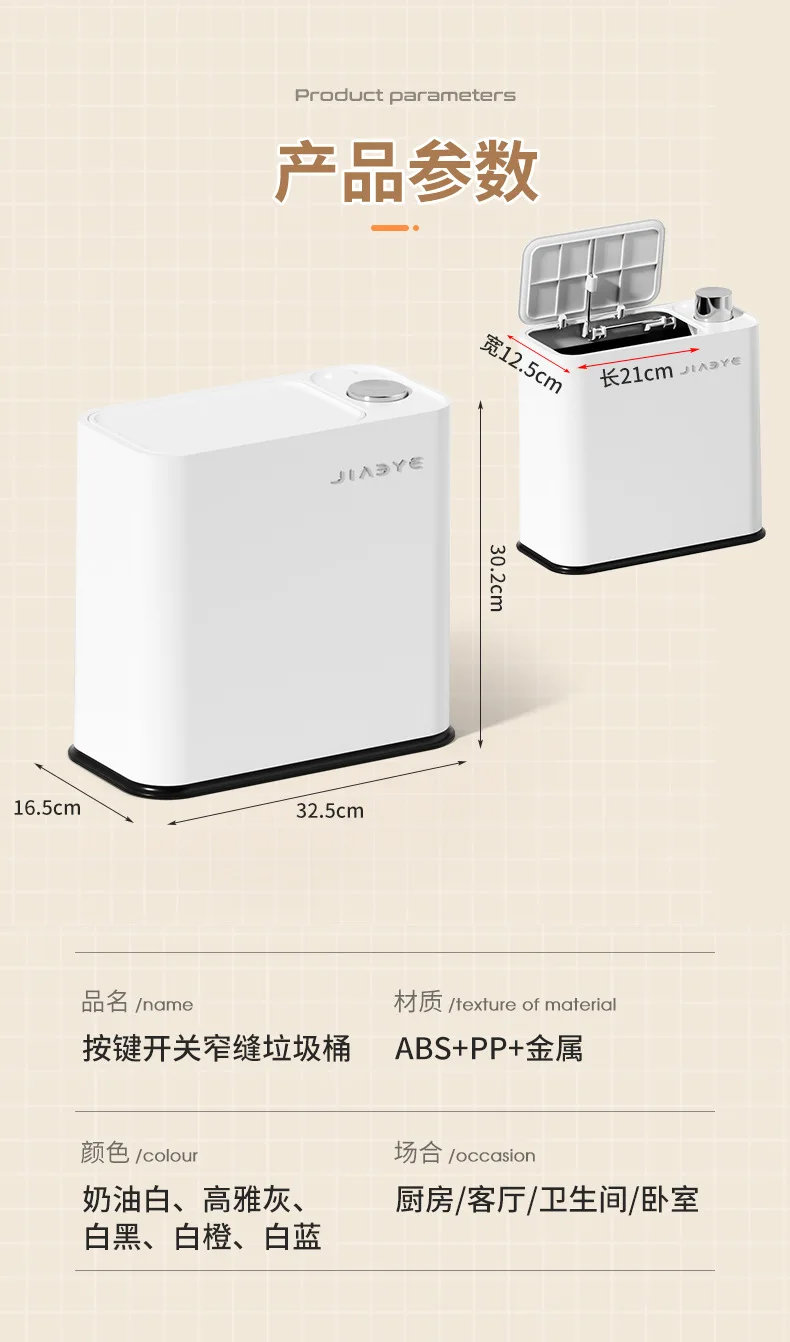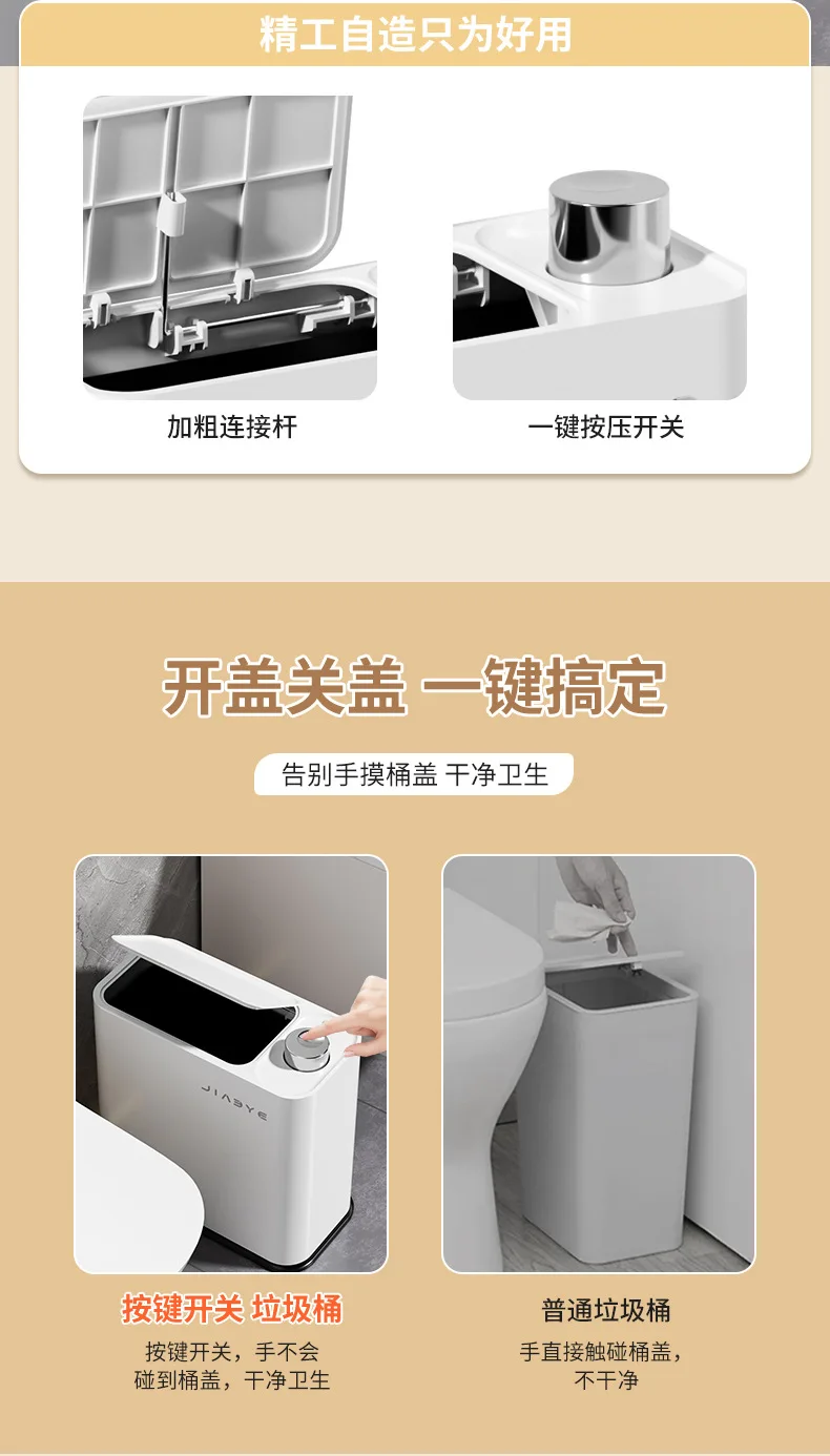 Narrow Trash Can with Lid, Touch Press Kitchen Bathroom Bin - Slim Space Saving Waste Basket, Large Capacity Waterproof Design